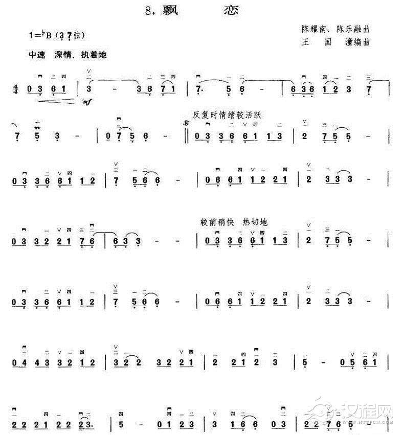 曲谱大全柳琴考级曲目十级:故土情愫(又名:陕北随想曲)