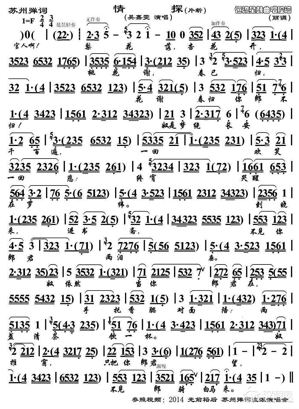 戏曲曲谱听宫娥在殿上一声启请(《太真外传》选段、唱腔琴谱)