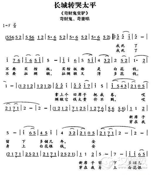 戏曲曲谱[敦煌曲子戏] 哭长城(《冯爷娶小》林女唱段)