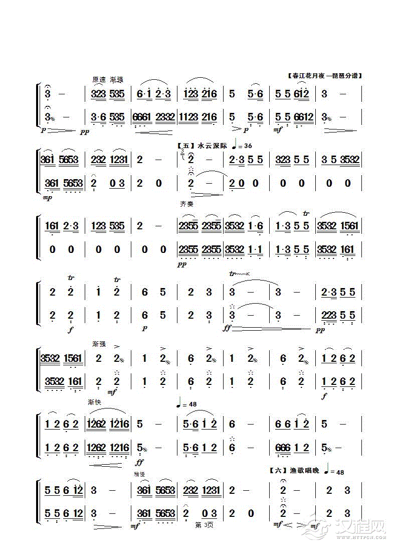 曲谱大全春江花月夜【民乐合奏琵琶分谱】第二页