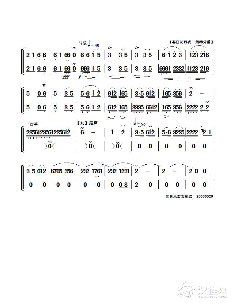 曲谱大全春江花月夜【民乐合奏扬琴分谱】第四页