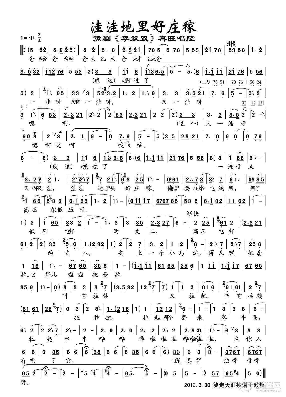 戏曲曲谱祖国的大建设一日千里(《朝阳沟》银环唱段)