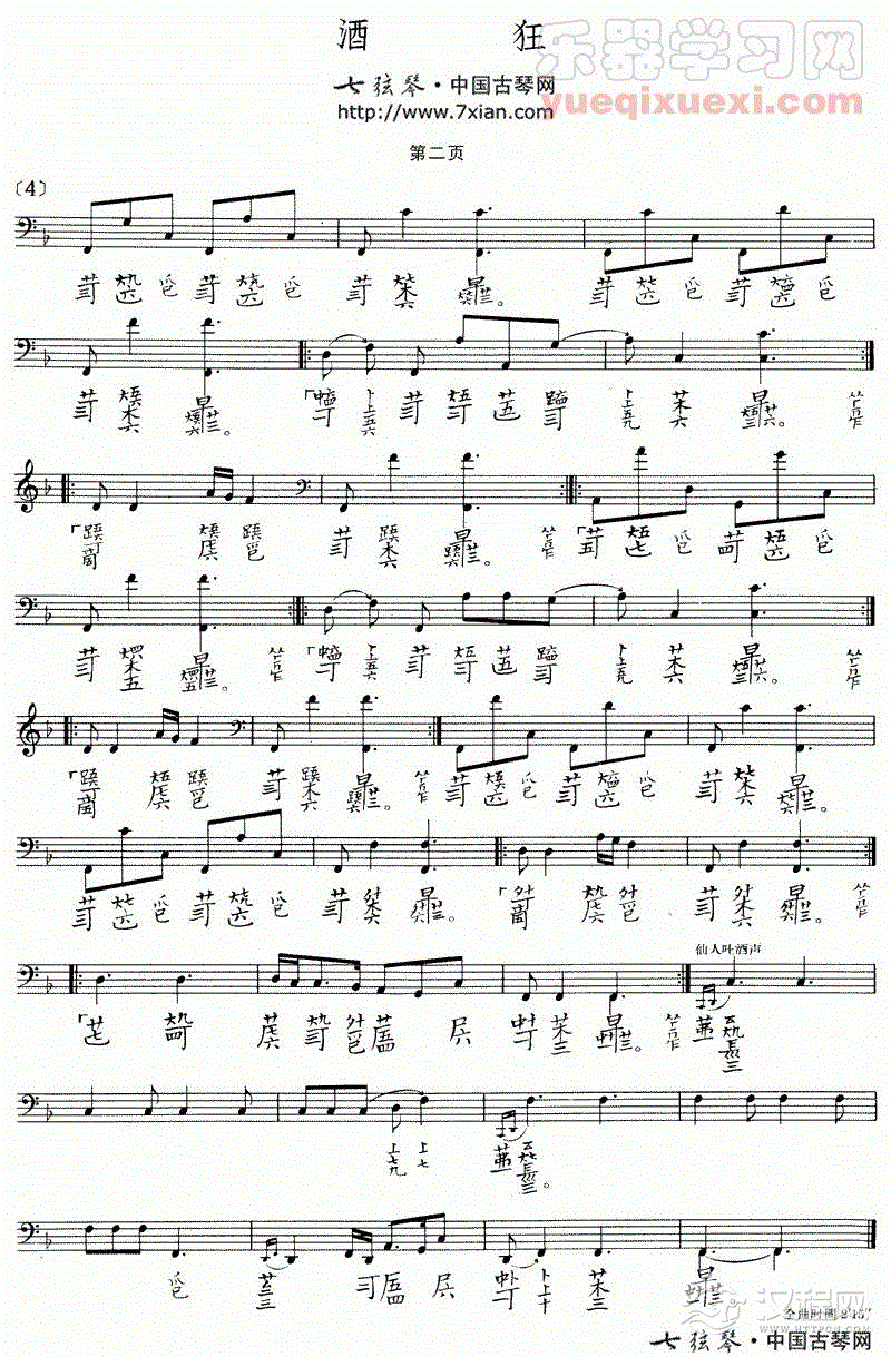 曲谱大全古琴考级曲目《精忠词》张子谦 樊伯庚打谱