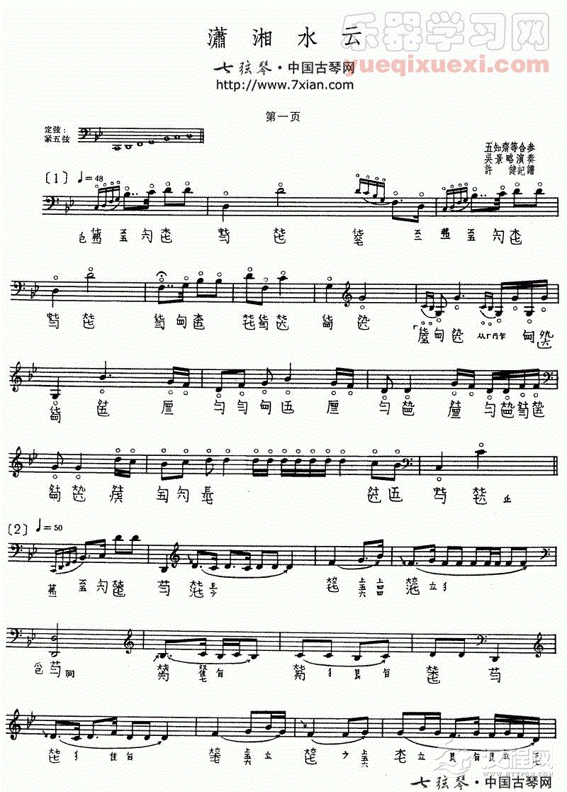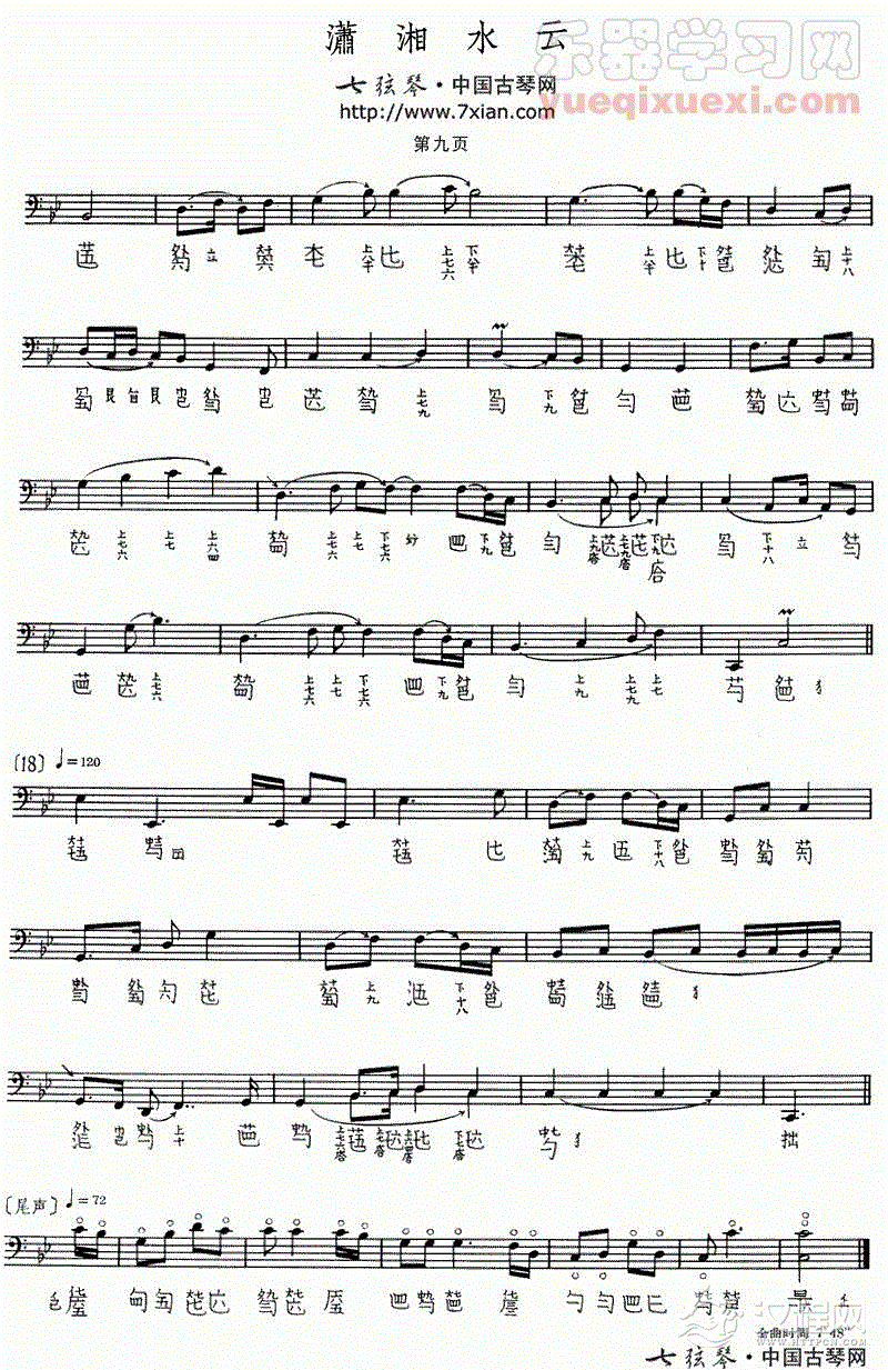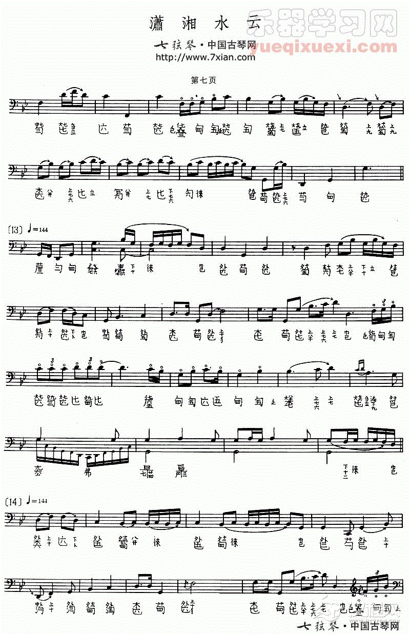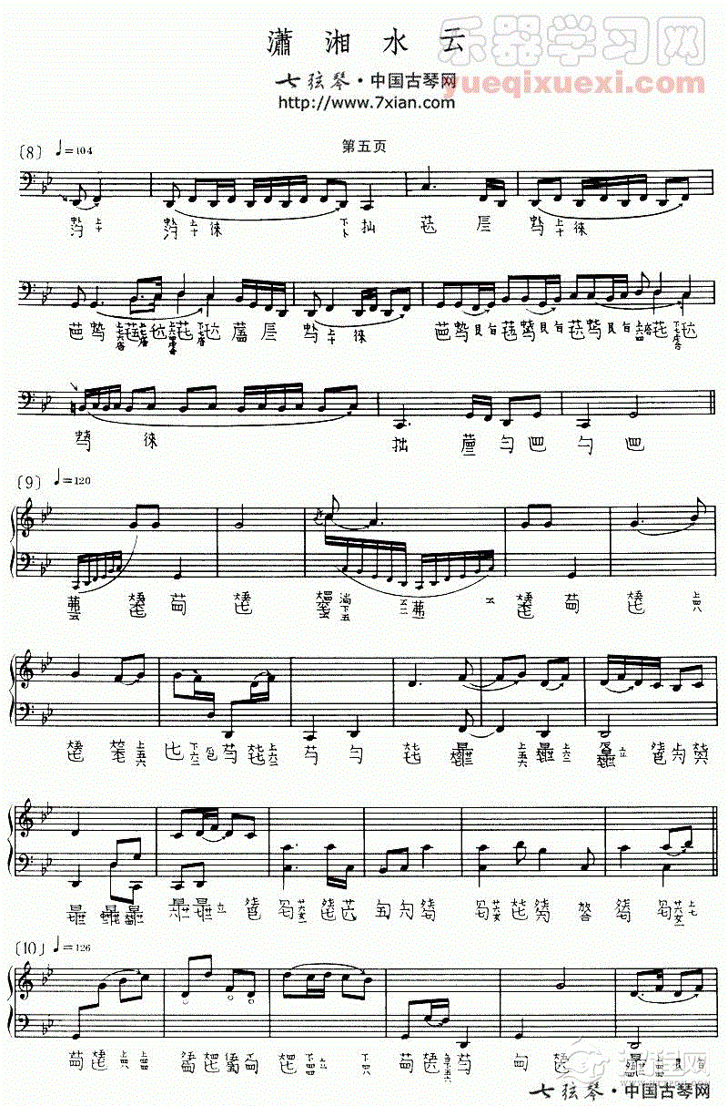 古琴曲《潇湘水云》乐谱