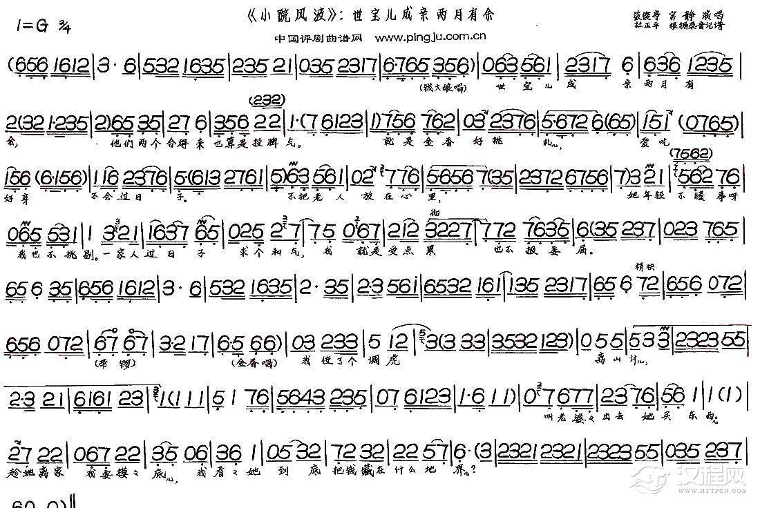 戏曲曲谱一句话说得我热泪难忍(《小院风波》选段)