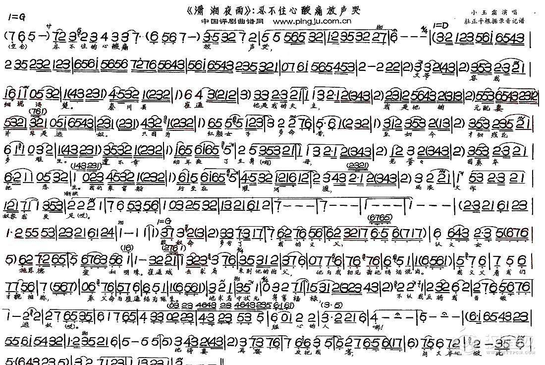 戏曲曲谱一句话说得我热泪难忍(《小院风波》选段)