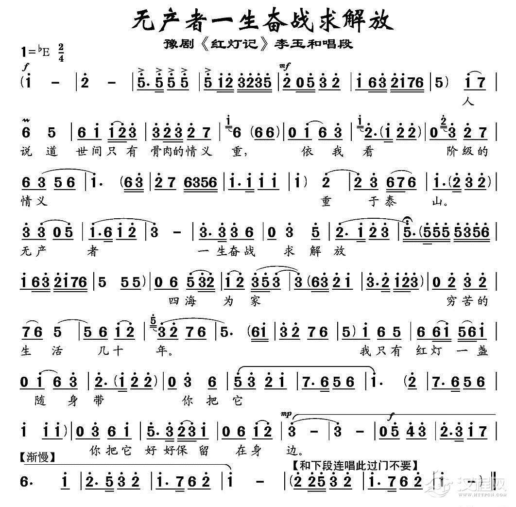 戏曲曲谱光辉照儿永向前(《红灯记》李铁梅唱段)