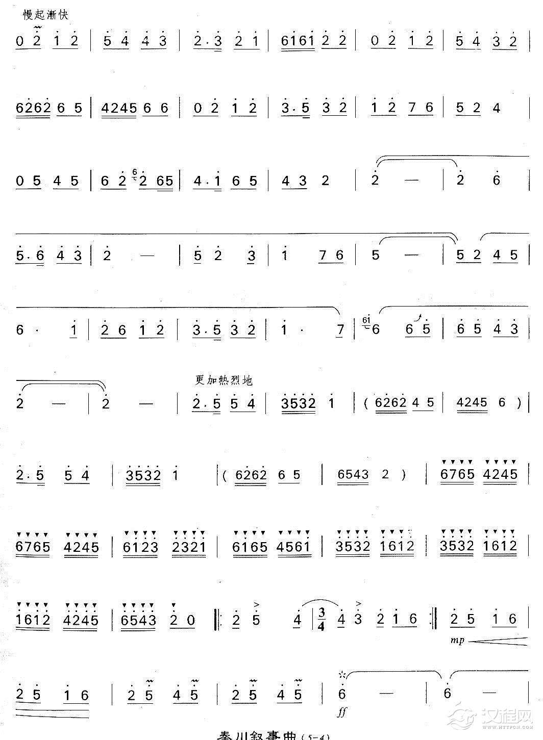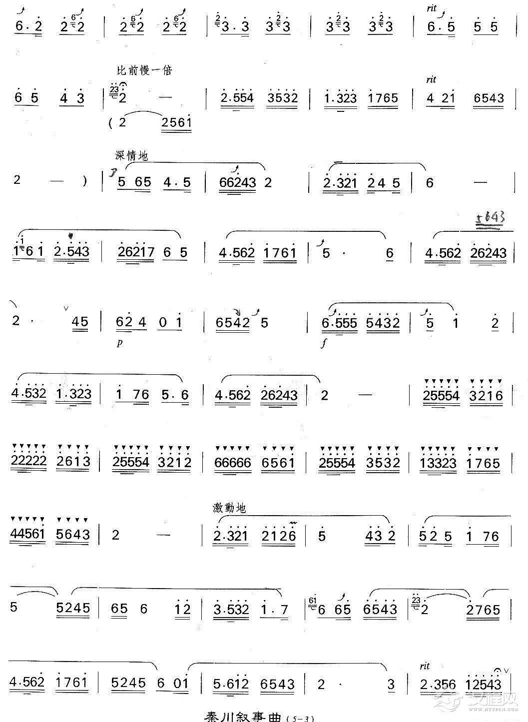 彩云追月(扬琴、中胡与笛子主旋合成谱)