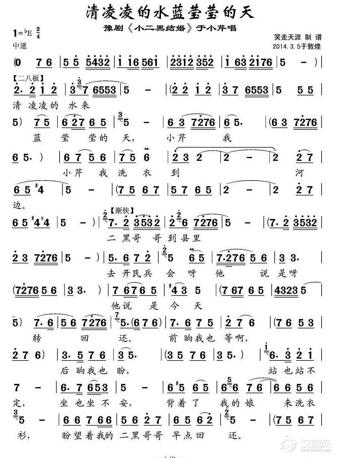 戏曲曲谱一条棍一只碗一腔悲叹(《麻风女传奇》邱丽玉唱段)