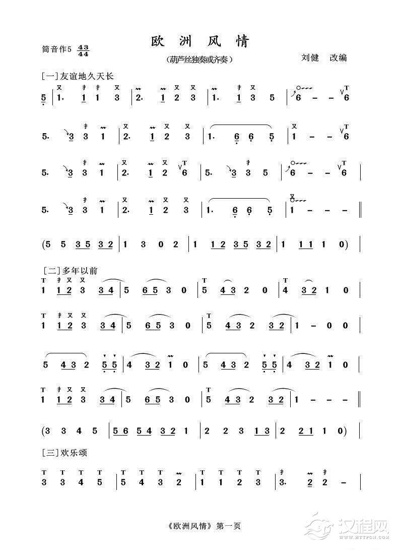 曲谱大全葫芦丝十部联奏之北美风情