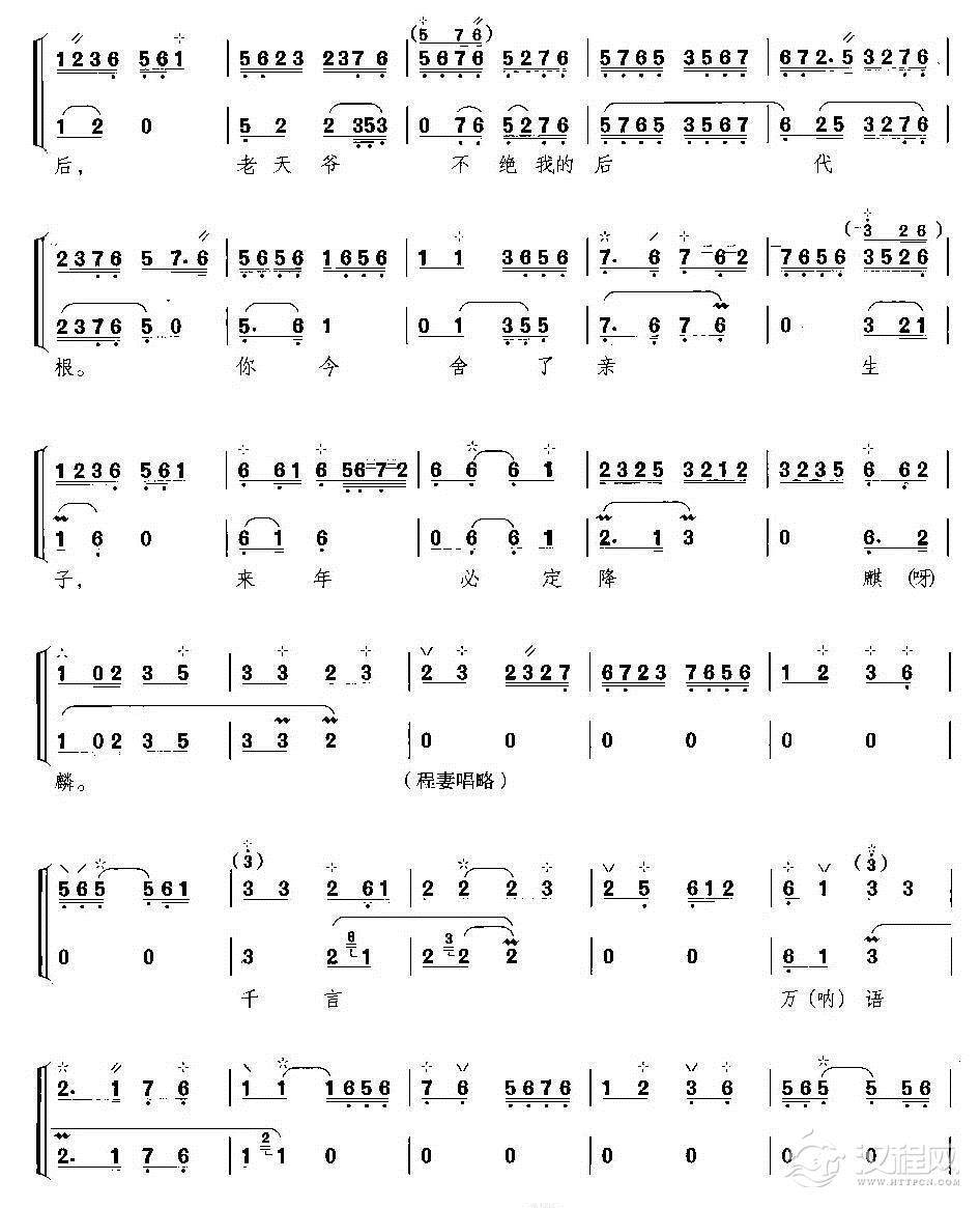 戏曲曲谱他一言落地千斤重(《宇宙锋》赵艳荣唱段)