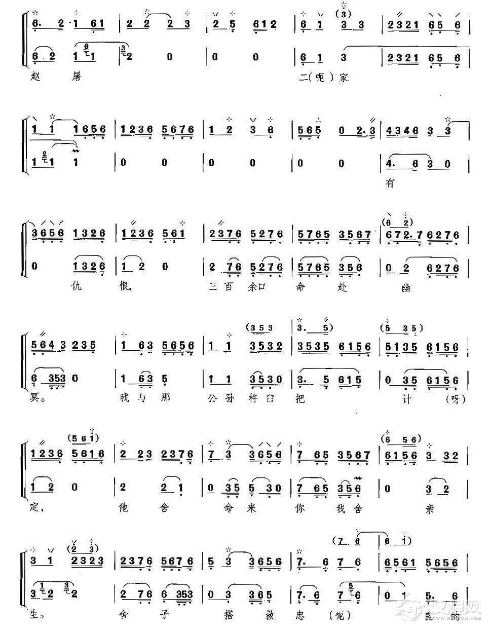 戏曲曲谱叹杨家投宋主心血用尽(《洪洋洞》选段、月琴伴奏谱)