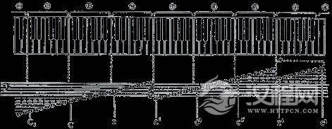 下面请看看五线谱在钢琴的键盘上相应的位置: