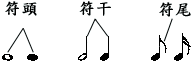 我们各自都长得不一样, 音符们也各有不同。但是它们大部分基本上都是由三个部分组成的 。即“符头”、 “符干”、 “符尾”。
