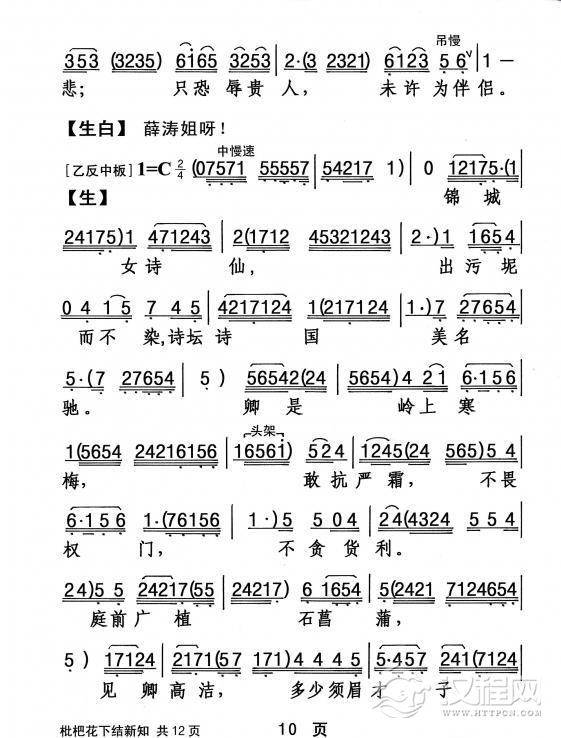 戏曲曲谱穿紫罗燃起我复仇烈火(《三上轿》崔秀英唱段)