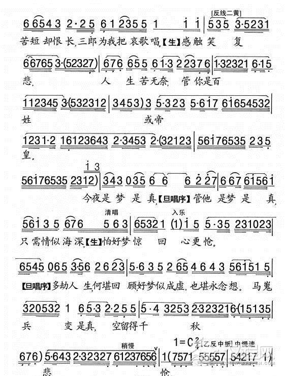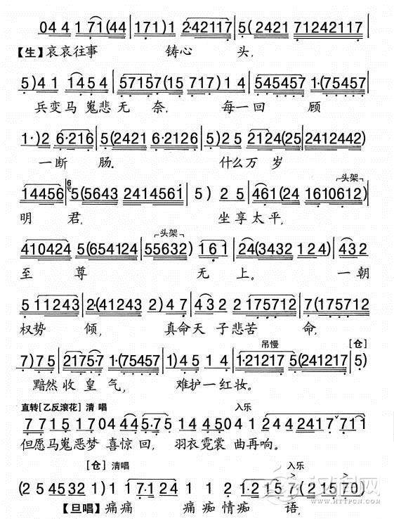 戏曲曲谱他一言落地千斤重(《宇宙锋》赵艳荣唱段)