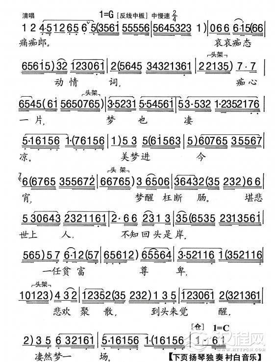 戏曲曲谱一条棍一只碗一腔悲叹(《麻风女传奇》邱丽玉唱段)