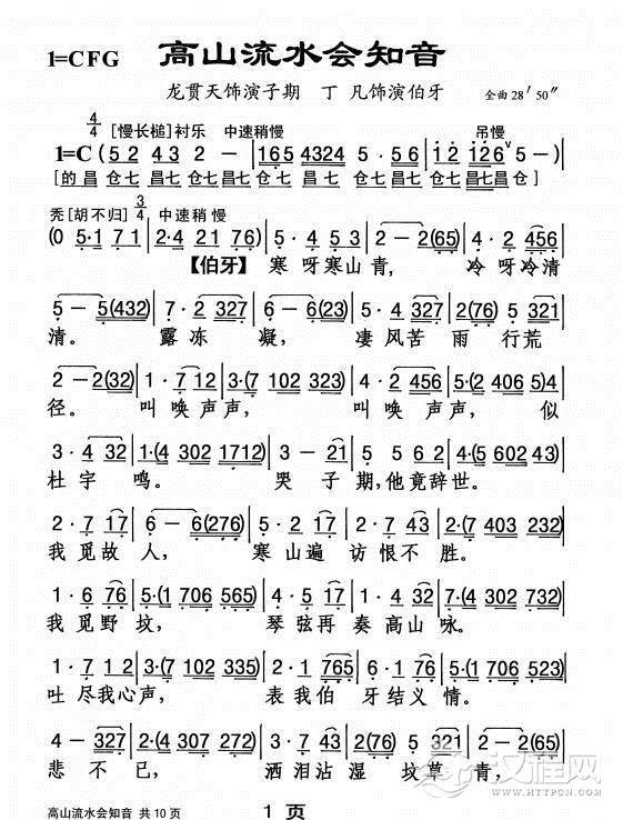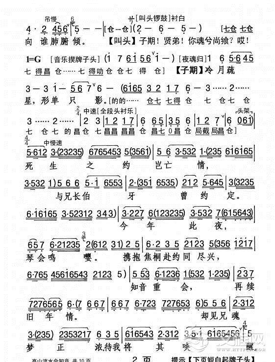 戏曲曲谱月下踏露缓缓行(《画皮》选段)