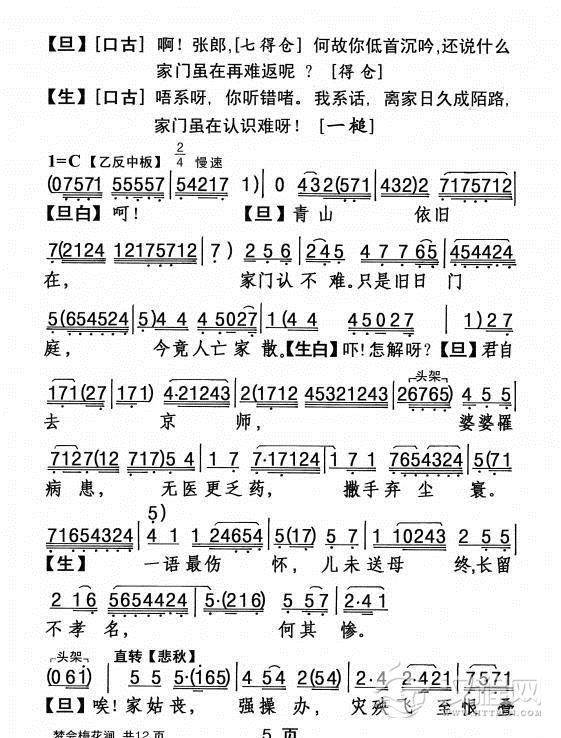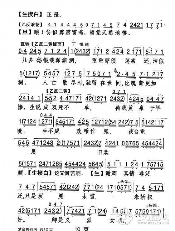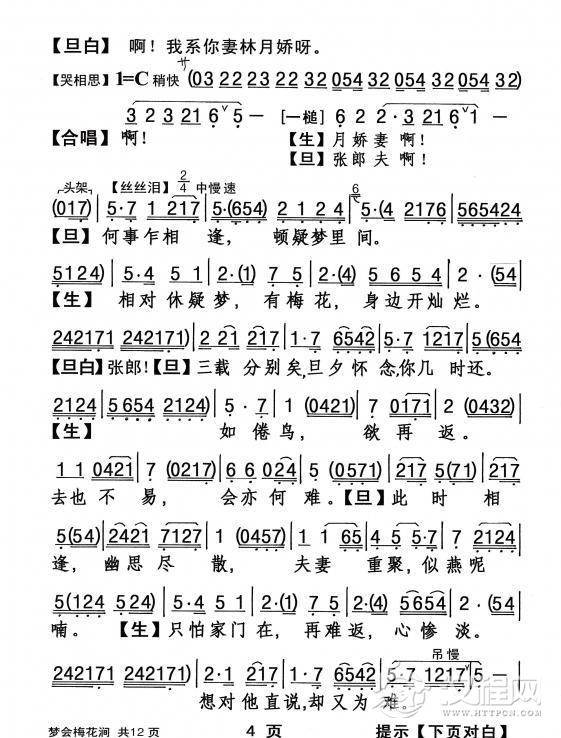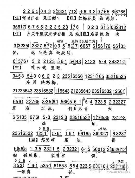 戏曲曲谱月下踏露缓缓行(《画皮》选段)