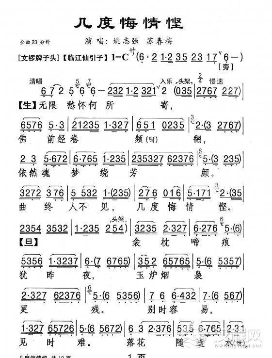 戏曲曲谱记得那日处相遇(《画皮》选段)