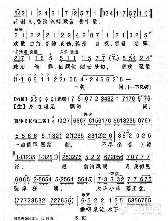 戏曲曲谱[粤剧] 梨花惨淡经风雨