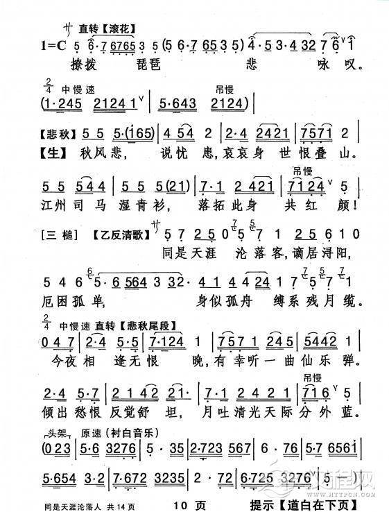 戏曲曲谱月下踏露缓缓行(《画皮》选段)