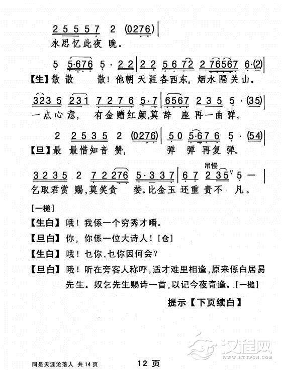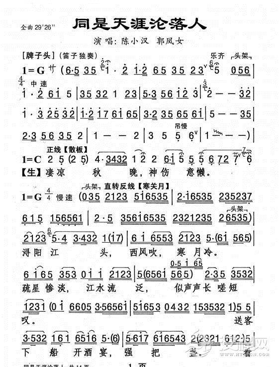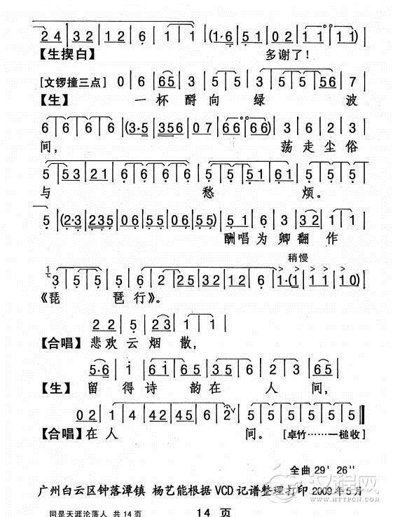 戏曲曲谱[粤剧] 胡笳情泪别文姬