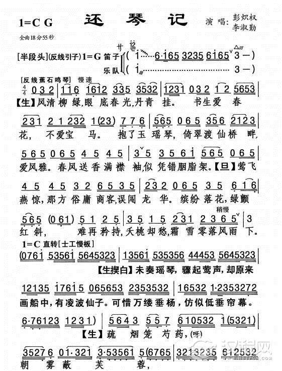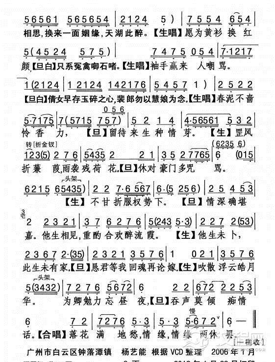 戏曲曲谱[粤剧] 同是天涯沦落人