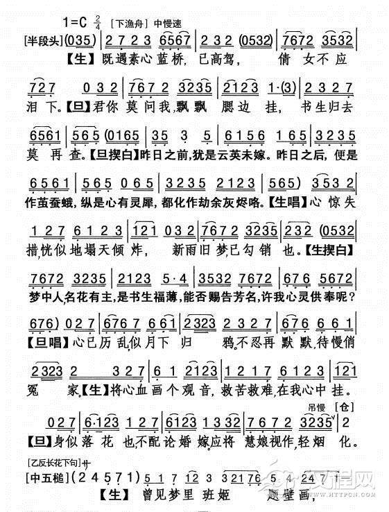 戏曲曲谱月下踏露缓缓行(《画皮》选段)