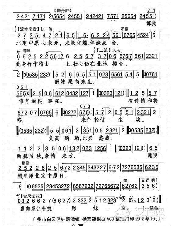 戏曲曲谱[粤剧] 挥泪别南唐