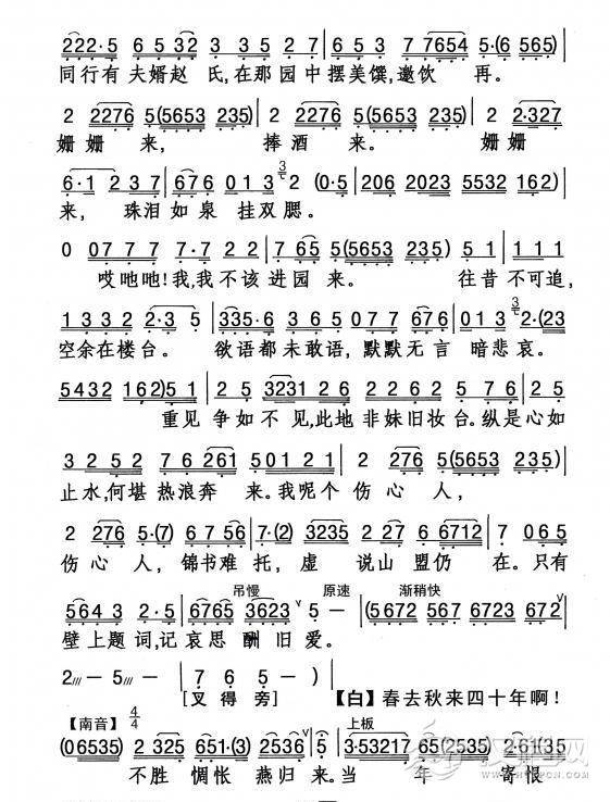 戏曲曲谱寂寂深闺情思长/云烟烟烟云笼绣房(《桃李梅》选段)