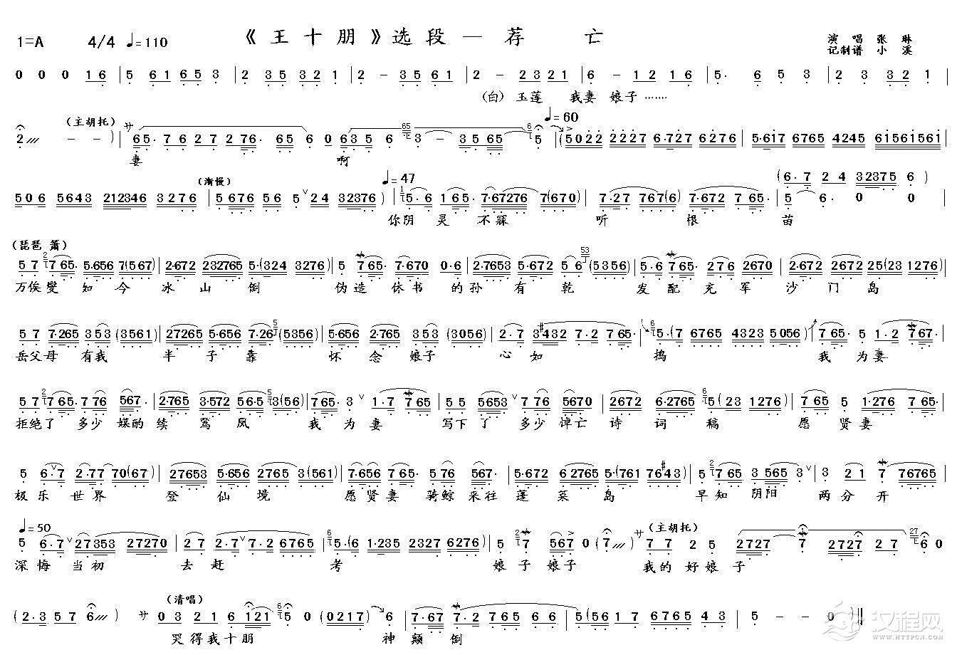 戏曲曲谱月下踏露缓缓行(《画皮》选段)