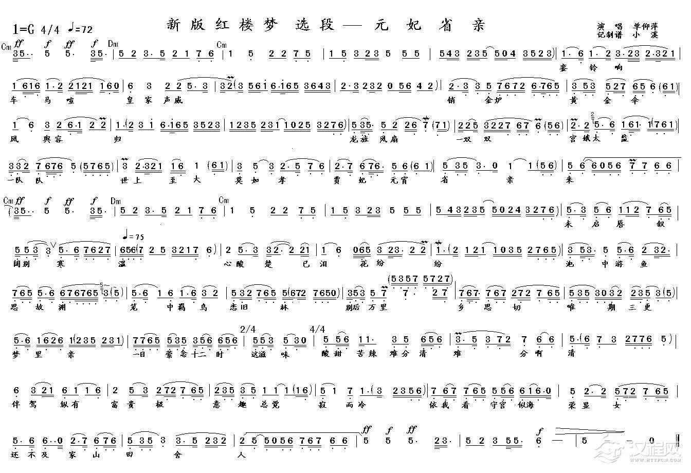 戏曲曲谱月下踏露缓缓行(《画皮》选段)