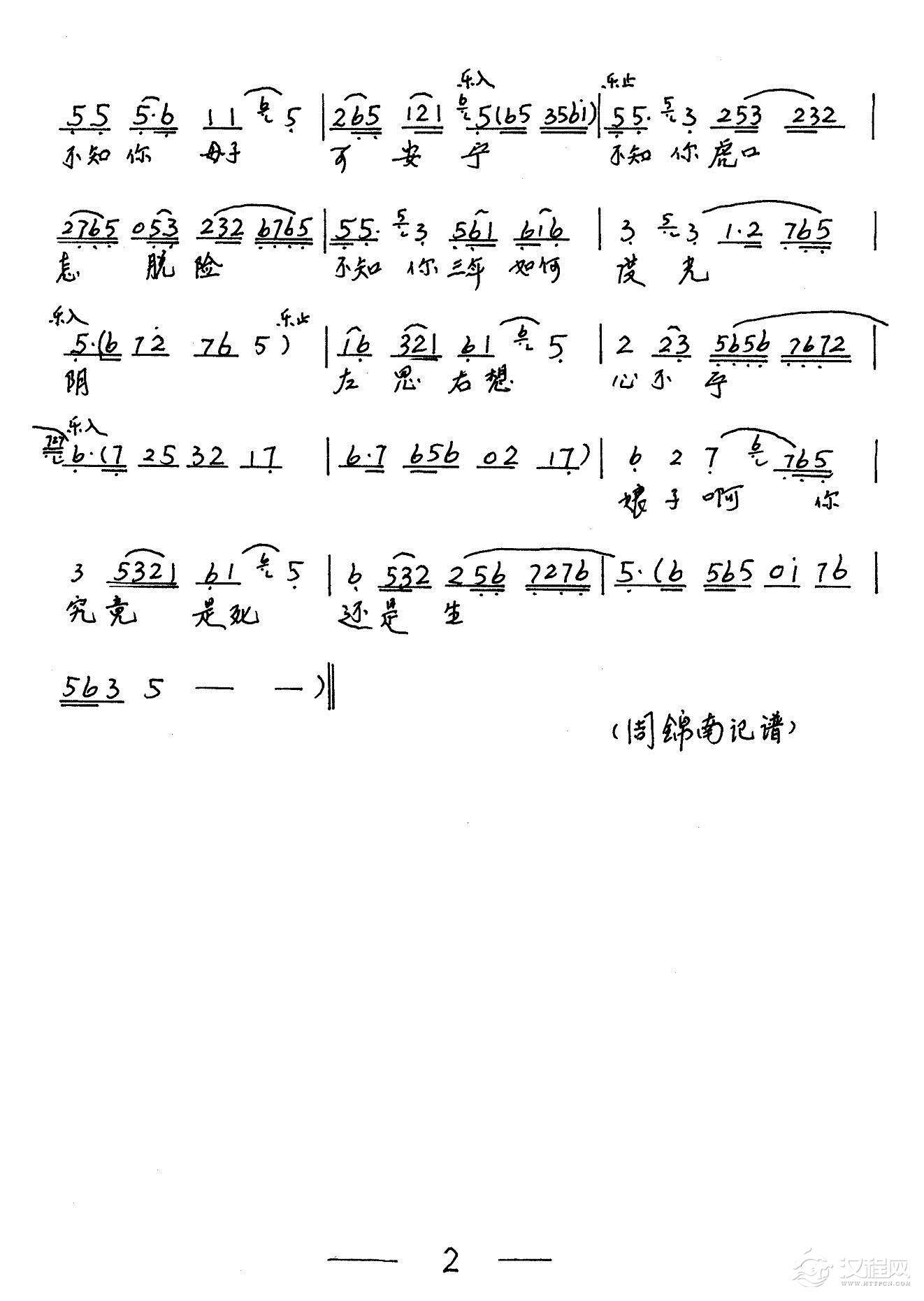 戏曲曲谱千悔恨 万悔恨 (《祥林嫂》选段)
