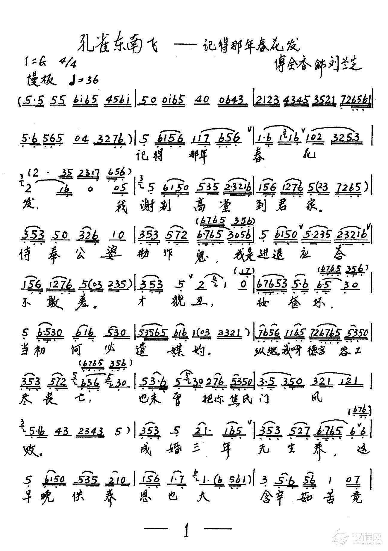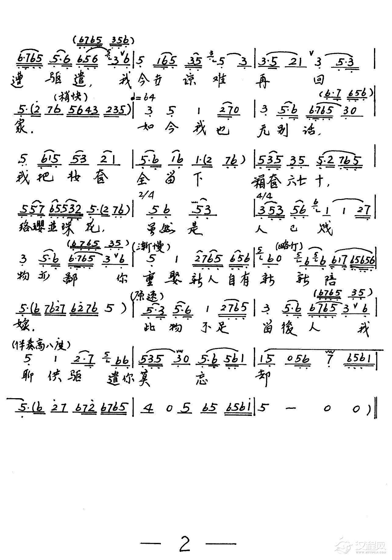 戏曲曲谱千悔恨 万悔恨 (《祥林嫂》选段)