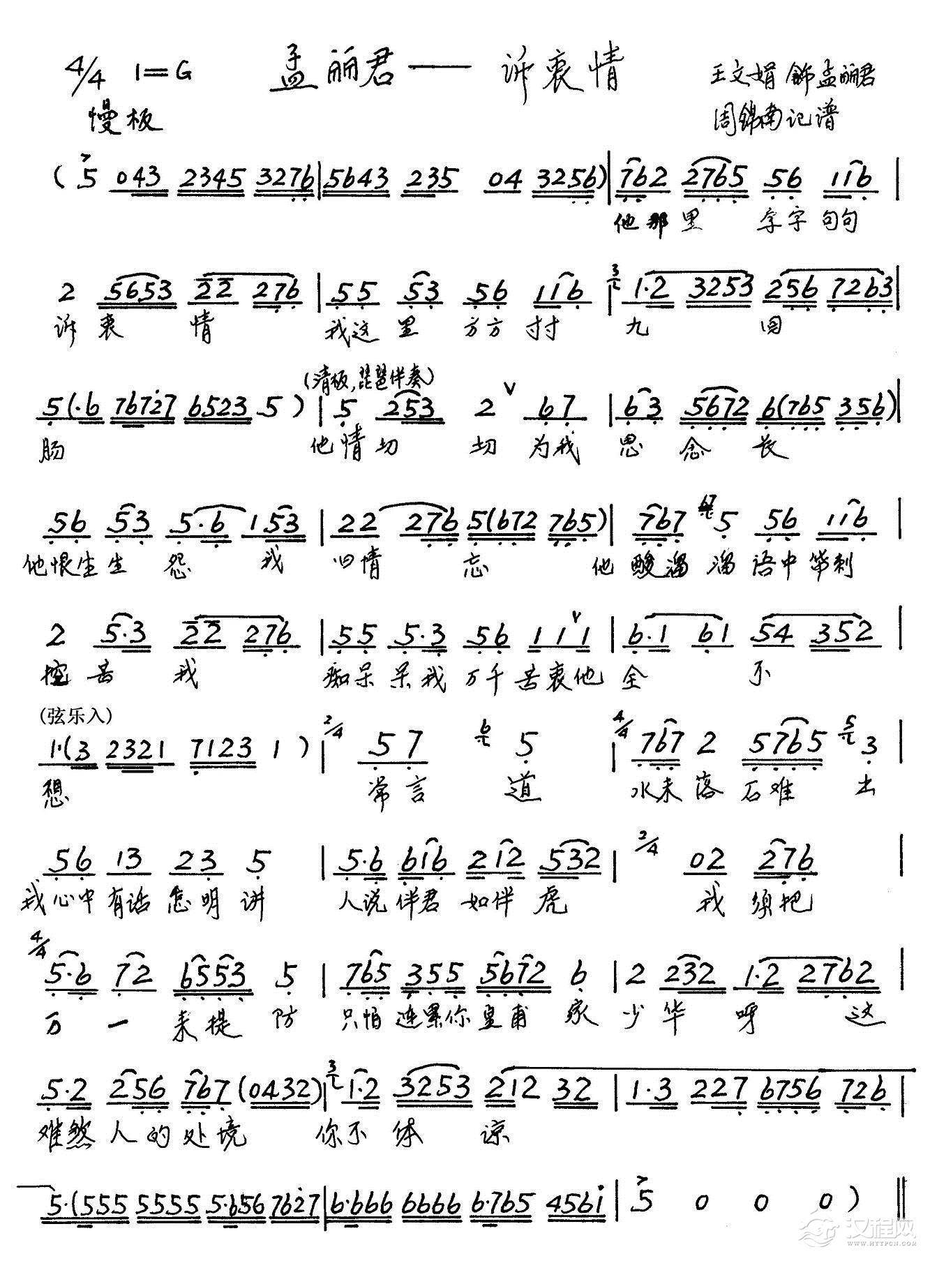 戏曲曲谱私访(《何文秀》选段)
