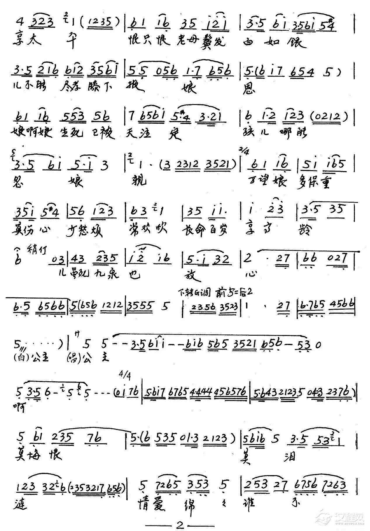 戏曲曲谱他那里字字句句诉衷情(《孟丽君》选段)