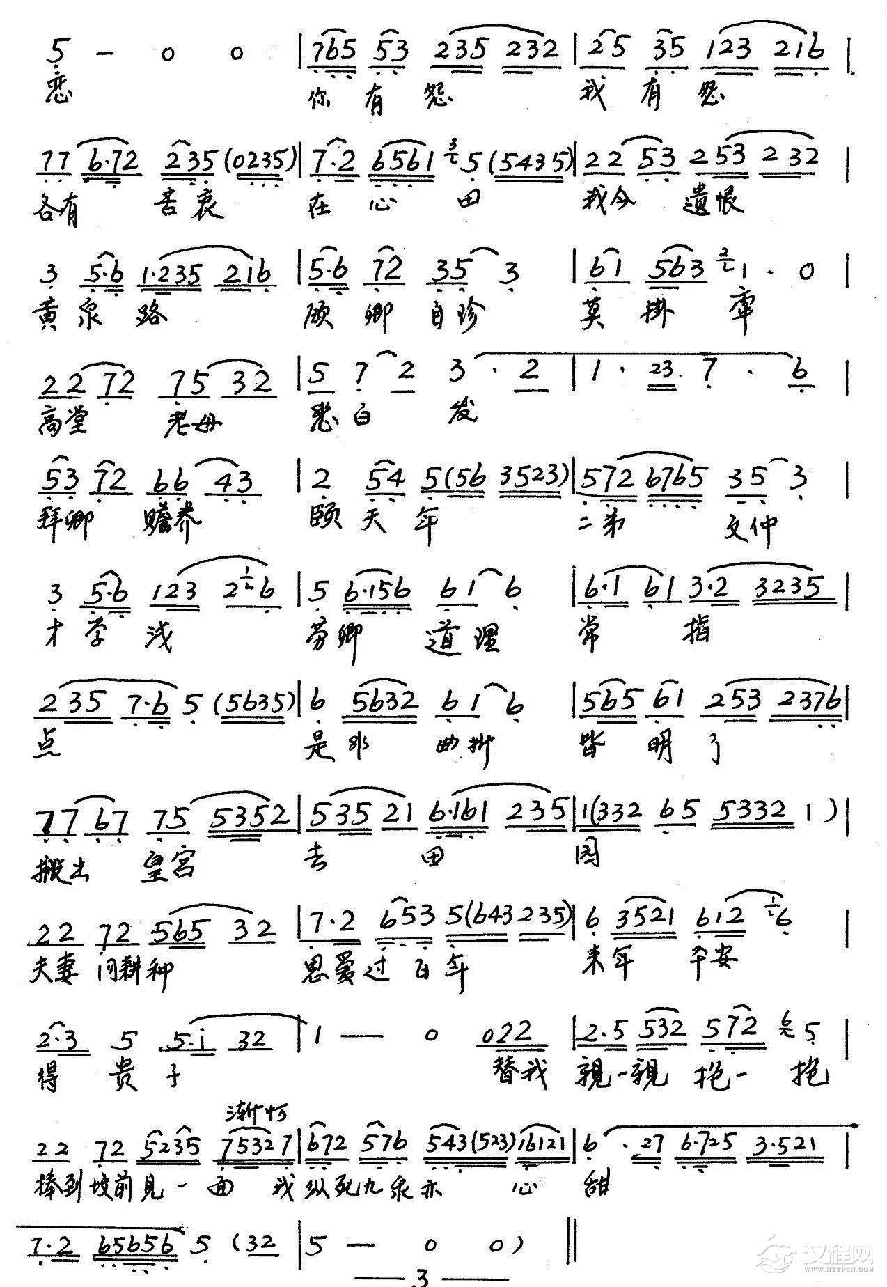 戏曲曲谱千悔恨 万悔恨 (《祥林嫂》选段)