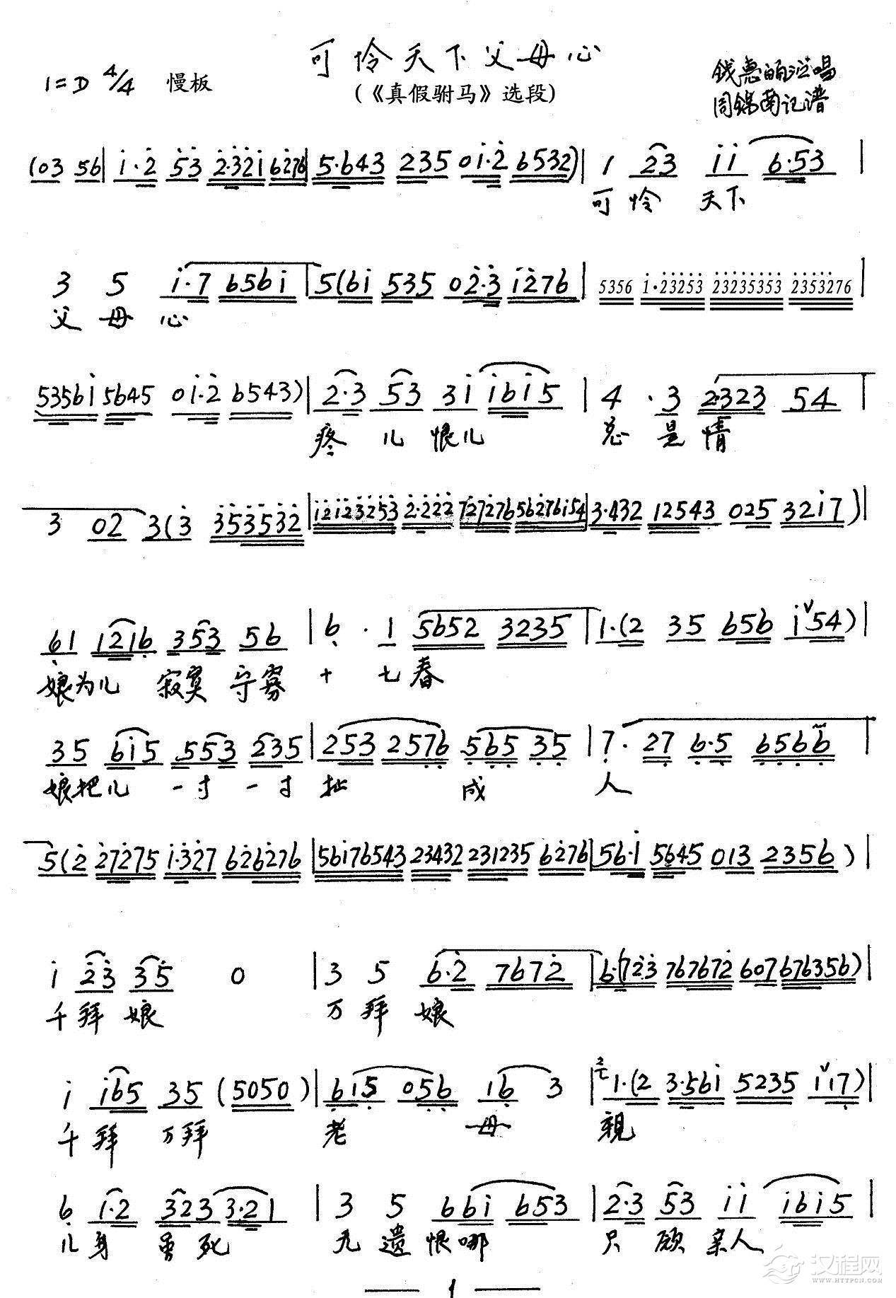 戏曲曲谱抬头问苍天(《祥林嫂》选段)