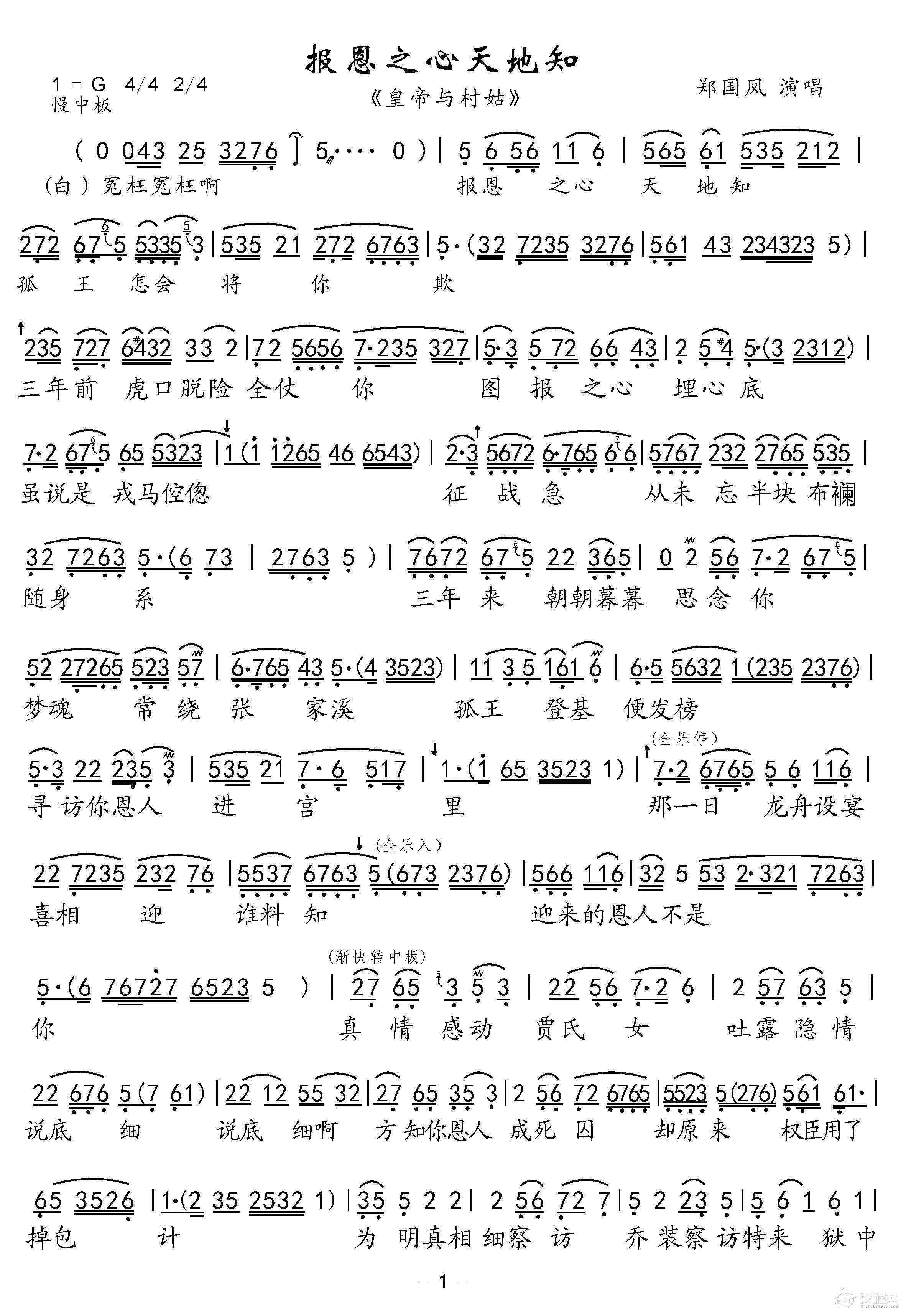 戏曲曲谱可怜天下父母心(《真假驸马》选段)