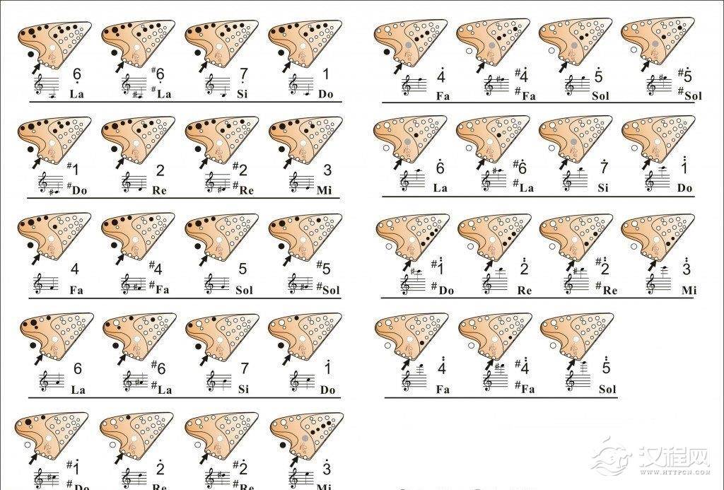 乐器学习详解六孔陶笛指法,六孔陶笛指法表图片