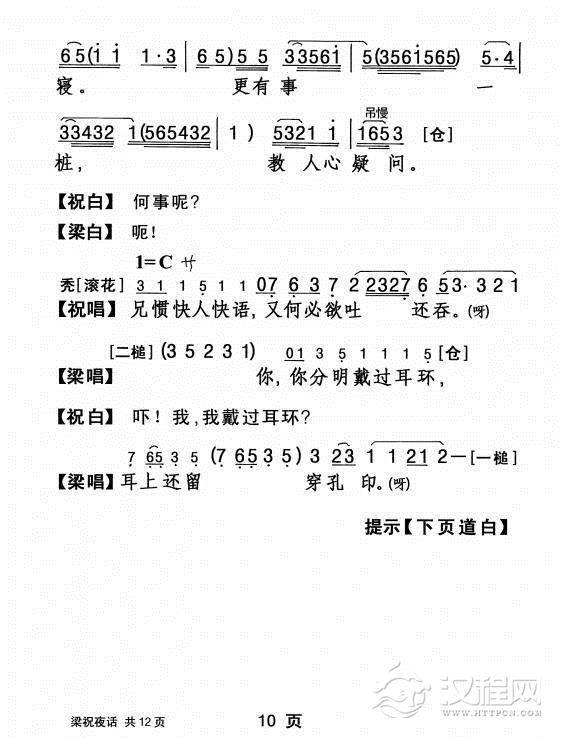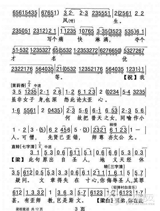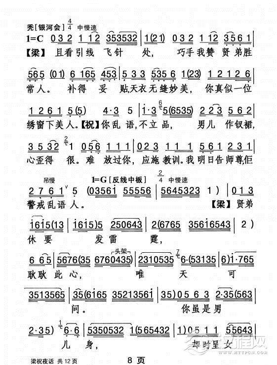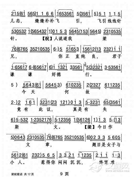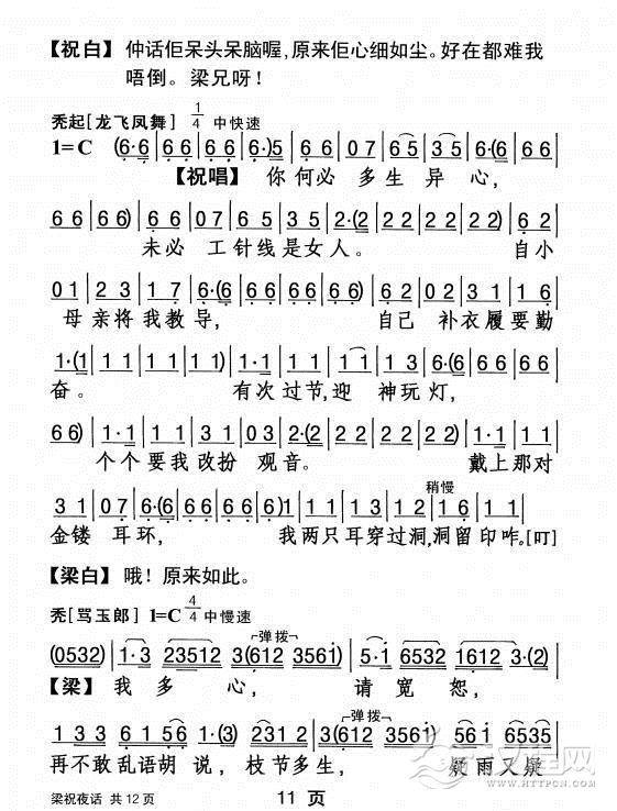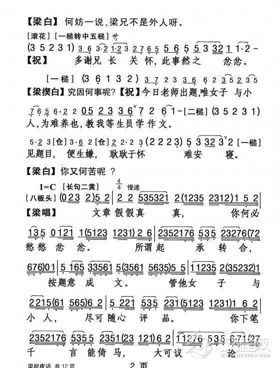 戏曲曲谱秋蝉树上戏秋风(《梁祝》梁山伯唱段)