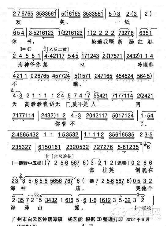 戏曲曲谱[粤剧] 祭玉河