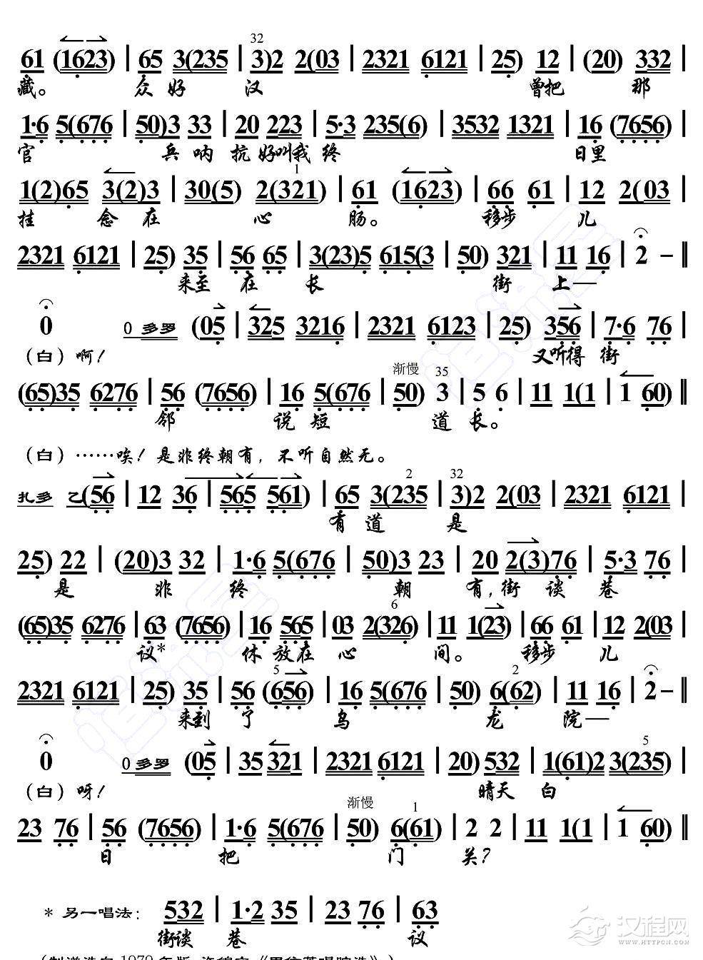 戏曲曲谱桥亭三月春光好(《白蛇传·断桥》选段)