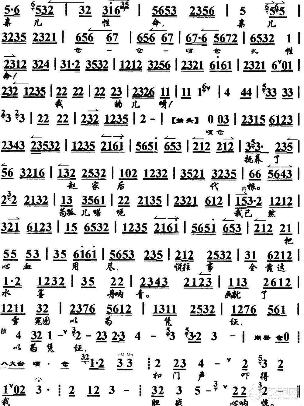 戏曲曲谱草枯叶落已深秋(《扫松下书》选段)