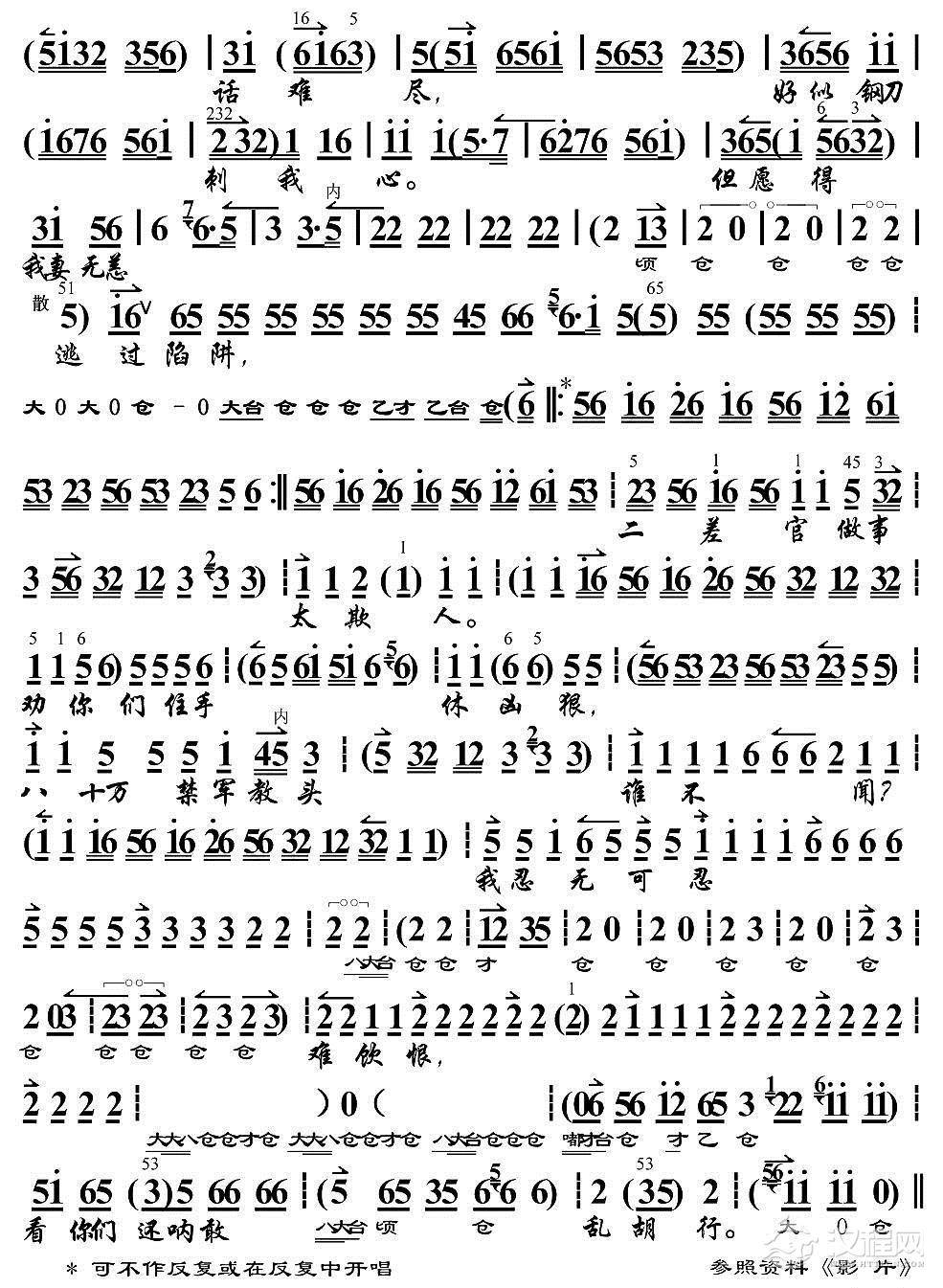 戏曲曲谱老将军你何必身背荆仗(《将相和》蔺相如唱段、琴谱)