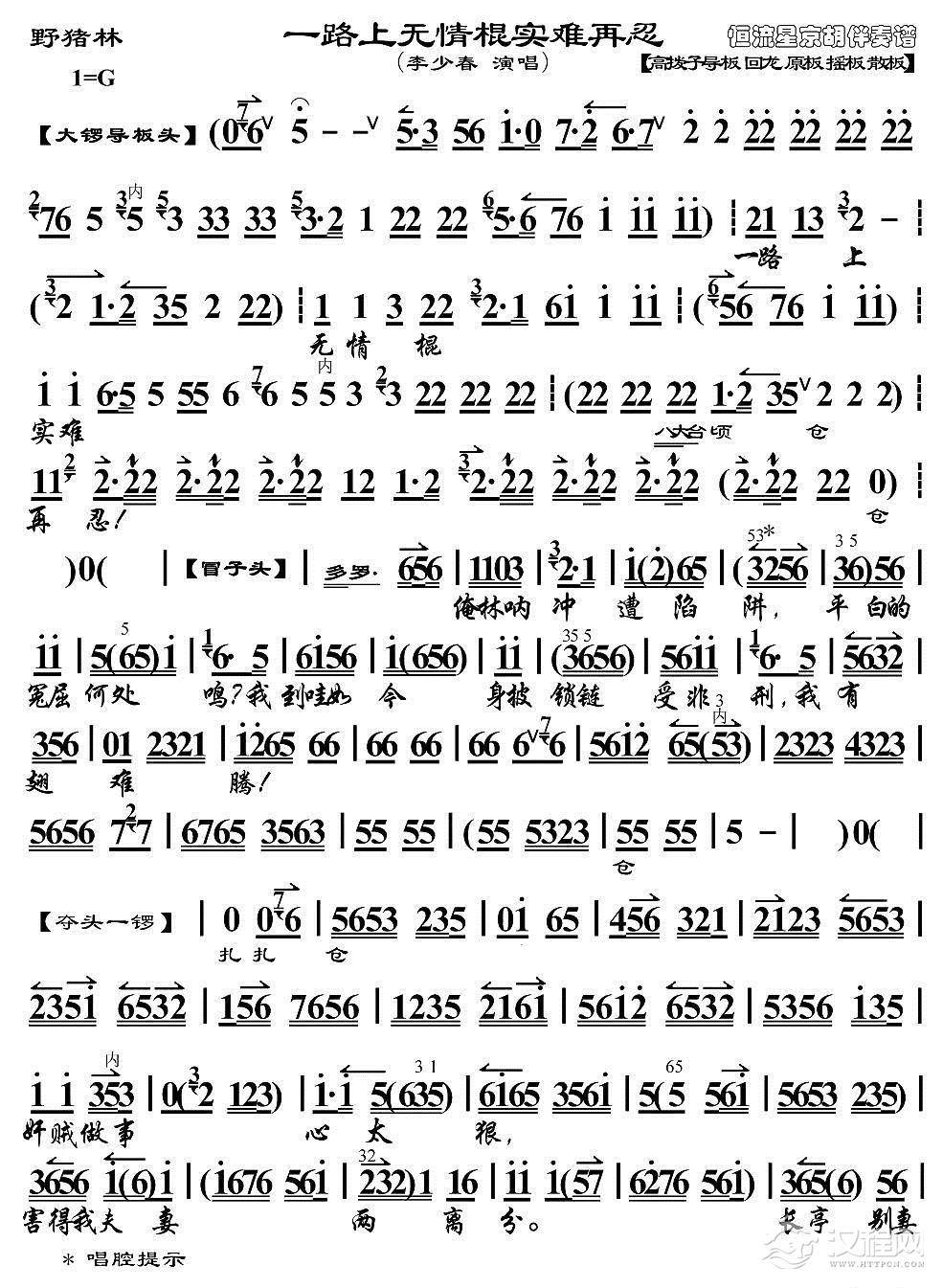 戏曲曲谱八十棍打得我冲天愤恨(《野猪林》选段、琴谱)