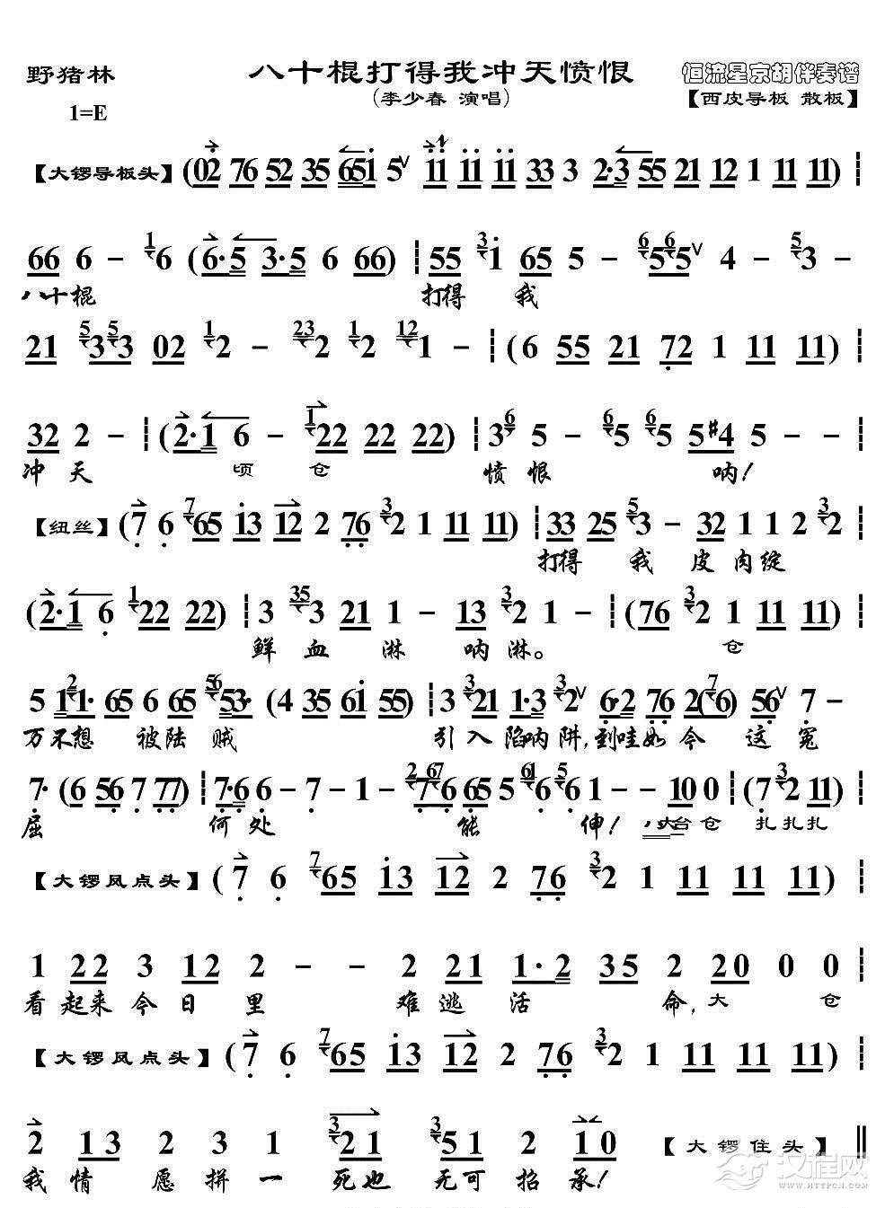 戏曲曲谱一路上无情棍实难再忍(《野猪林》选段、琴谱)