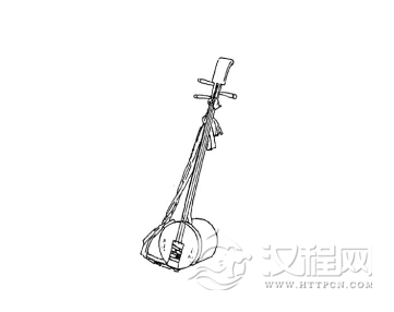 大三弦由共鸣筒、琴头、琴杆、弦轴、琴马、缚弦和琴弦等部分构成(图),规格尺寸不一,琴身全长多为130厘米~140厘米,民间特大的大三弦,琴身全长可达180厘米~200厘米。琴筒呈圆筒形,体积硕大,筒长30厘米~40厘米、筒径25厘米~35厘米,民间特大的大三弦,筒长达70厘米~80厘米、筒径60厘米~70厘米。筒腔用椿木、松木、杉木、桐木或其它木质较轻的木材制作,既可用一整段原木掏挖出腔体,也可用多块木板拼接胶粘而成,在横置的琴筒上下开有穿入琴杆的方孔,筒前口蒙以羊皮为面,筒后口敞口,不设音窗。琴头、琴杆使用一整块稍硬的木材制作,当地多用冬瓜木或攀枝花木等。琴头造型古朴,上部下窄上宽,顶端呈卷书状并向后弧形弯曲,正面中央常刻以红五星、镶嵌圆形木雕或闪光小圆镜为饰。琴头下部中间开有通底弦槽,两侧设有三个弦轴(左一右二)。弦轴使用红椿木、黄檀木或黄杨木等质地细密、比琴杆坚硬的木料制作,轴体外表刻有麻花形或直条瓣纹为饰。琴杆为半圆形柱状体,上窄下宽、前平后圆,正面为按弦指板,不设品位,上端设有山口与琴头相接,下端插入琴筒方孔中。有些精品大三弦,常在琴杆正面胶以一块硬木指板,多用乌木、紫檀木、红木或红椿木,指板厚1.2厘米~1.5厘米,既不过多增加大三弦的重量,又使琴杆耐磨和不易变形。琴马用硬木或老竹制成,为长条形实心马,横截面呈等腰三角形,置于琴筒膜面中央偏上部位。张三条丝弦或牛筋弦,弦下端系于缚弦的弦孔中,缚弦用金属薄片制成,其上还串挂有若干小铁片或小铁环,弹奏之时,可随跳乐动作发出有节奏的哗哗声响。琴身的弦槽和尾柱之间,系有一根绸布制彩条背带。在弦槽的上方,还拴挂有一朵用薄绸挽制的大红花为饰。#p#分页标题#e#