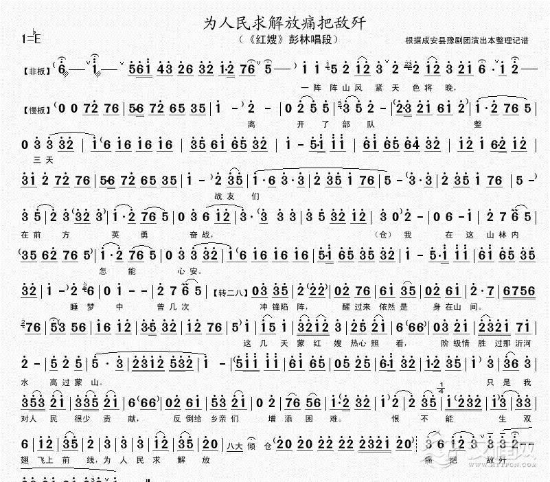 戏曲曲谱为改变穷山沟咱各显本领(《朝阳沟》选段)